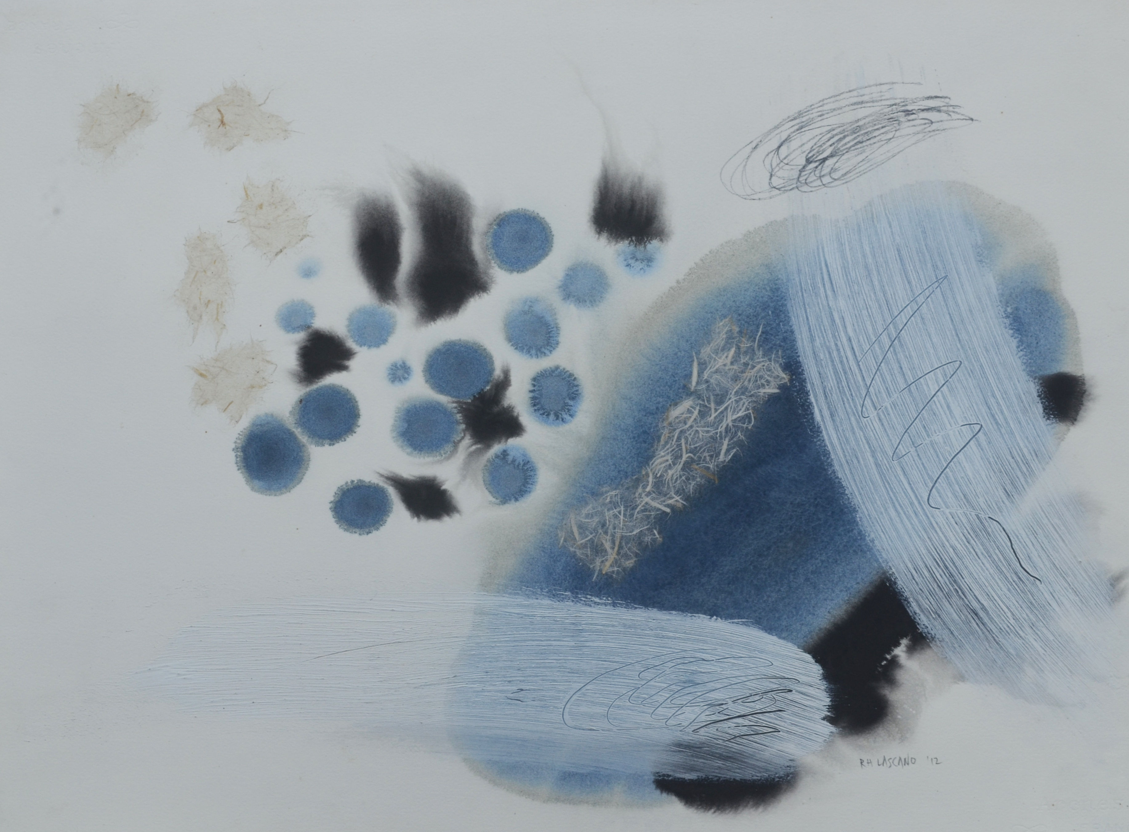 Lascano's abstract practice draws from the breathtaking nature in the Philippines, the spiritual traditions of his home country, and his own quest for serenity and peace in a busy world. Within his floating compositions and delicately textured expanses, Lascano creates boundless spaces of stillness and timelessness. He invites viewers to occupy the transcendantal space of his inner journey.